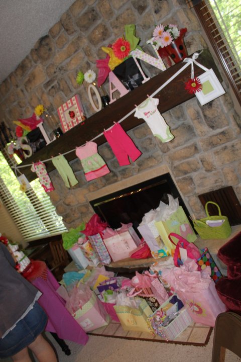 Last Saturday, my cousin Lisa and I threw my sister a baby shower! She's expecting their first baby (a sweet little lady, Sloan Elizabeth) in August! We went with a Lady Bug theme since Sloan's bedding has lady bugs on it. I think we did a great job, if I do say so myself. Shannon was thrilled with everything! We had the shower at my mom's house, since she has more room. Lisa and I were in charge of everything, except for the food. My mom made 2 breakfast casseroles; one was a french toast casserole that was to DIE FOR and the second was some sort of egg, ham, peppers, etc. that was equally as delicious. I ordered cupcakes from my sweet friend Kristina (she made B's birthday cupcakes, our wedding cake, etc.) and they turned out perfect! We had 4 different flavors: yellow cake w/chocolate ganache filling, chocolate cake w/raspberry filling, red velvet w/cream cheese filling, and pink champagne cake w/cheesecake filling. Go ahead and wipe the drool from your mouth. Kristina also put lady bugs, flowers, and polka dots on the tops of the cupcakes! And she threw in a large cupcake for the Mommy To Be! Shannon loved it! We played a couple games. First was Bingo but instead of calling it Bingo, we called it 'Sloan'. Each guest had a blank 'Sloan' card and had to fill in the blanks with baby items, chosen from a list we printed off. Then Shannon (and my sweet niece Ava) drew out the items from a bowl and the first 2 people to get a 'Sloan' got prizes! It was fun and it definitely 'educated' my sister on stuff she'll need! The second game wasn't really a game but it was still fun. While Shannon opened her gifts, we set a timer for 4 minutes. Whoever gave Shannon the gift she was opening when the timer went off, got a prize. Some of our prizes were gifts for the guest but some (and most) were gifts for Shannon and Sloan. We had 'party favors' for the guests as they left; lady bug chapstick -- thanks Avon! -- and Lucky Charm marshmallow treats. The thing that Shannon has mostly been craving has been Lucky Charms so my cousin Lisa made them in to treats, like rice krispy treats. She even went thru the whole box of cereal and picked out the marshmallows before making the treats and then she put them on top after they were done! That's love right there...hehe!
